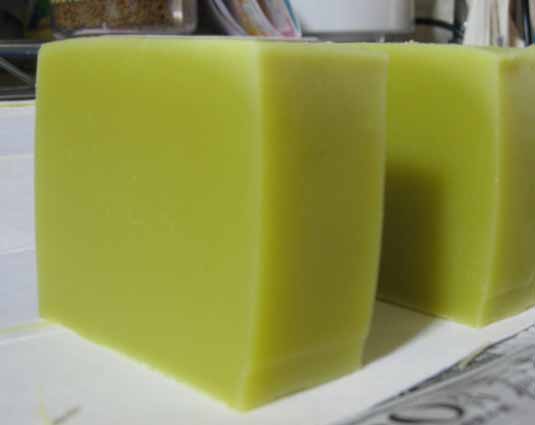 今回アボガドオイルがアウトレット店で買ったのを使ったんだけど、これがすっごい濃いグリーンだった為、見事なグリーンになった。